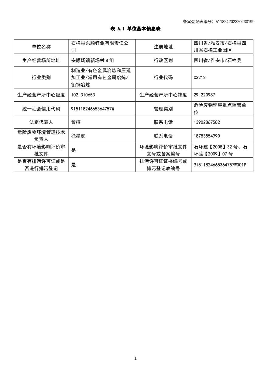 - 石棉縣東順鋅業(yè)有限責任公司 危險廢物污染環(huán)境防治信息公開 2023-07-10